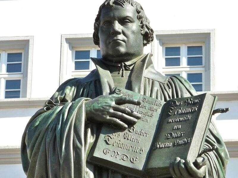 Eine Statue von Martin Luther als Denkmal in der Lutherstadt Wittenbeg.