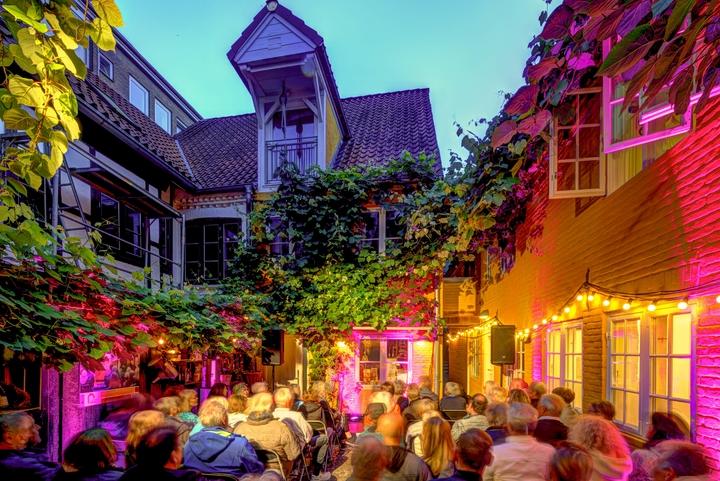 Open-Air-Festival mit Konzerten aus den Bereichen Jazz, Weltmusik, Folk, Pop und Rock in den historischen Kaufmannshöfen der Stadt Flensburg; Rahmenprogramm mit Kleinkunst, Kurzfilmen und Lesungen.