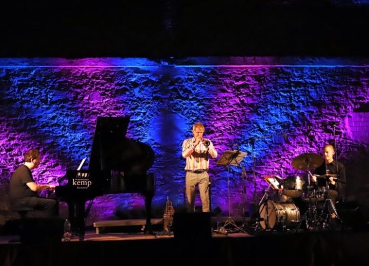 Konzert im Rahmen der 33. MUSIKWOCHEN WESERBERGLAND mit dem Jazz-Trio Inside Out (Markus Stockhausen, Florian Weber, Leif Berger) am 27.6.2021 in der Gutsscheune des Rittergutes Westerbrak
