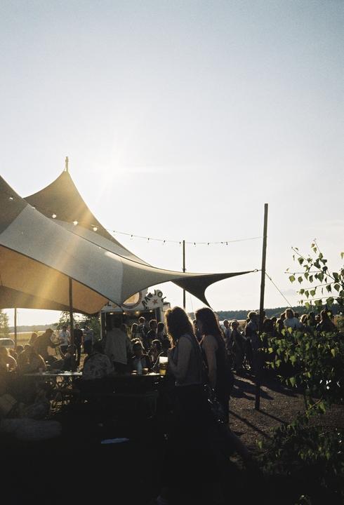 Luftansicht eines Floors auf dem Sägewerk Festival