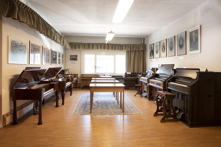 Ausstellung historischer Schiedmayer Tasteninstrumente mit den Abteilungen Fortepiano, Harmonium/Celesta und selbstspielende Instrumente.