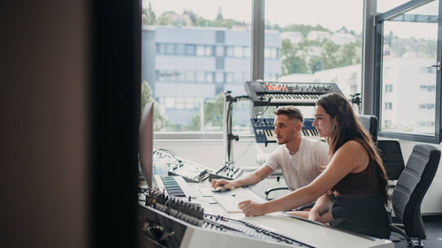 Im Fachbereich Audio Engineering erlernst du professionelle Produktionsabläufe. Außerdem erlangst du fundiertes Fachwissen sowie technisches Verständnis. Darüber hinaus sammelst du praktische Erfahrung ohne Ende, denn durch unser besonderes Hands-On-Prinzip erhältst du bereits im Studium Zugang zu professionellen Arbeitsplätzen und hochwertigem Equipment. Dadurch kreierst du schon während deines Studiums dein persönliches Portfolio, mit dem du dich und deine Fähigkeiten präsentieren kannst.