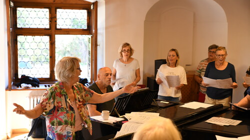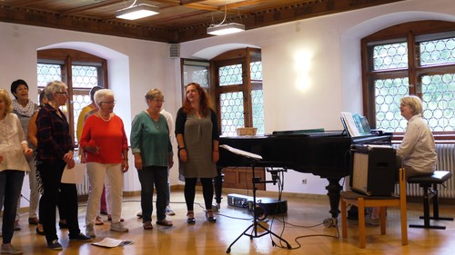 Eingeladen sind auch die früheren Teilnehmerinnen und Teilnehmer des Jazzchors. Es werden neue Arrangements erarbeitet und neue Übungen ausgeführt.