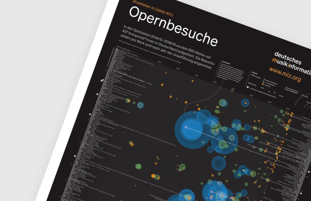 Wie sich das Repertoire im Detail in den Spielzeiten 2014/15 bis 2018/19 zusammensetzte und wo die Schwerpunkte der insgesamt 19 Millionen Besuche lagen, verdeutlicht das Deutsche Musikinformationszentrum (miz) in detaillierten Infografiken. Als Datengrundlage für die Analyse diente die jährliche Werkstatistik „Wer spielte was?“ des Deutschen Bühnenvereins.